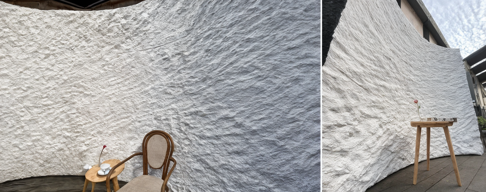 Flexible Stone is a composite veneer that mimics natural stone, engineered for versatility and ease of installation on flat or curved surfaces. Made with mineral textures and polymer binders, this material combines the visual impact of stone with high flexibility, making it perfect for interior and exterior applications that require adaptive design solutions.